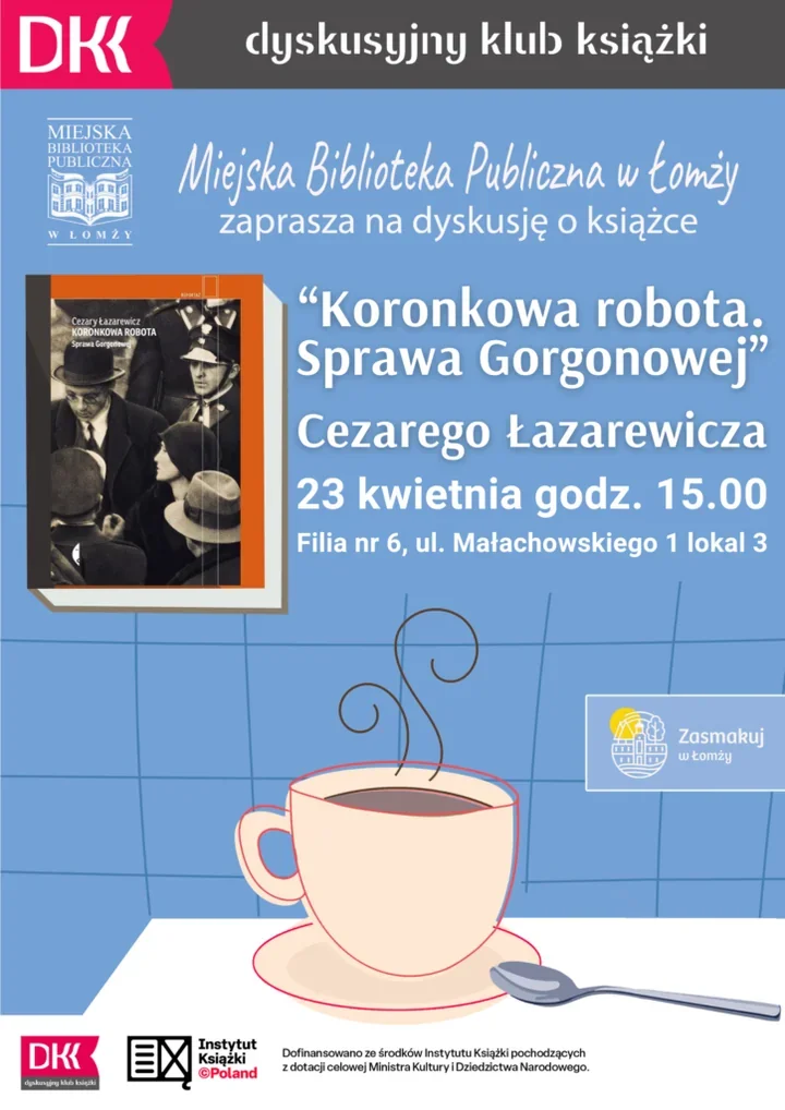 Spotkanie odbędzie się 23 kwietnia (czwartek) o godz. 15.00 w Filii nr 6 przy ul. Małachowskiego 1 lokal 3. Tym razem uczestnicy będą rozmawiać o książce „Koronkowa robota. Sprawa Gorgonowej” Cezarego Łazarewicza, czyli reportażu, który nie tylko przypomina głośny proces, ale też pokazuje, jak wiele w tej historii pozostaje niejasne.